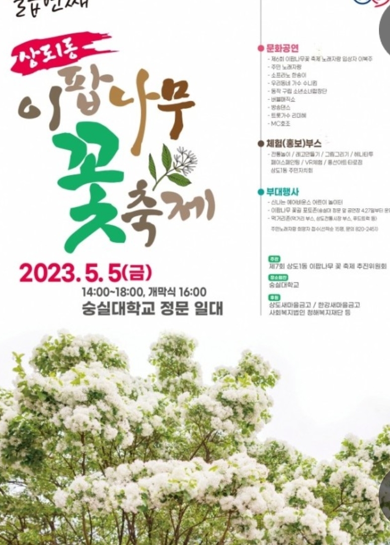 상도1동 지역행사로 5월에 이팝나무 축제가 열립니다.